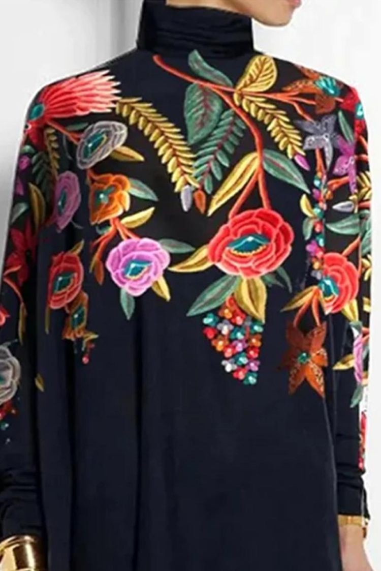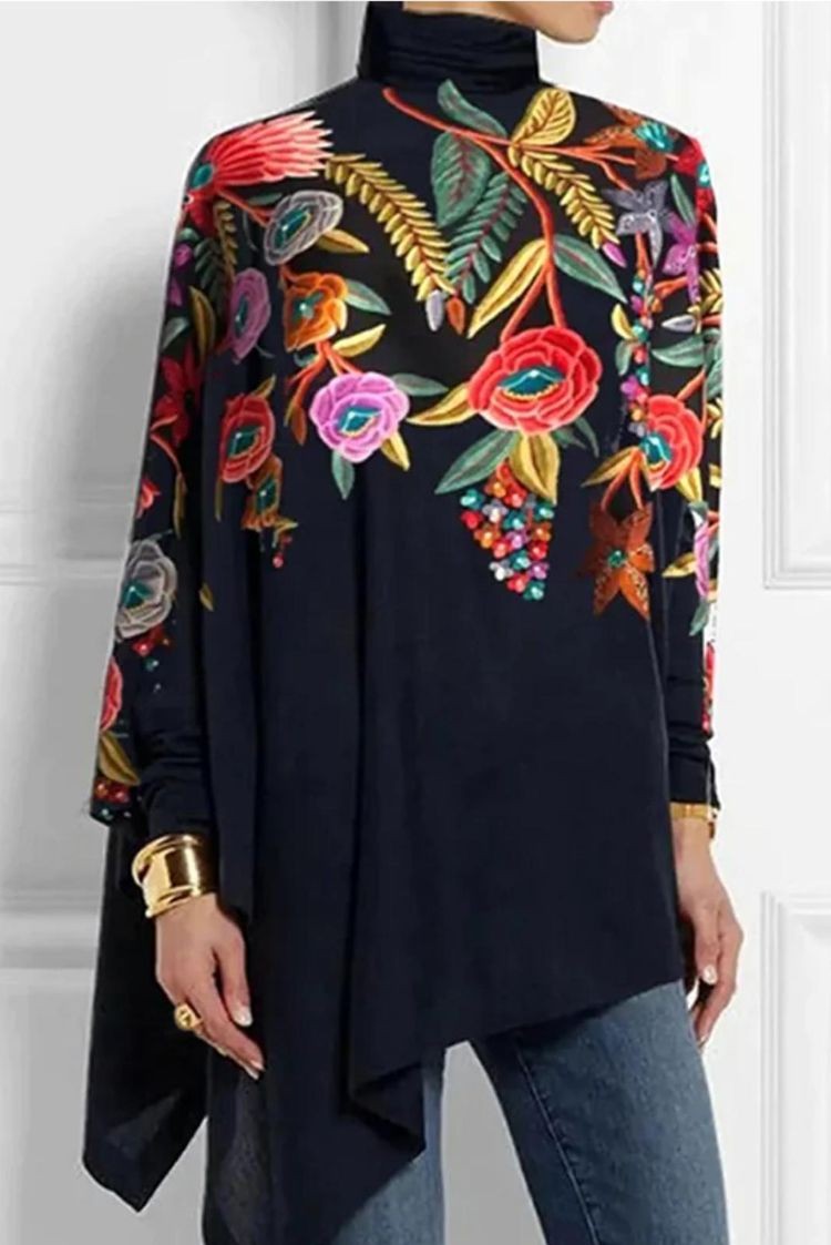 - Praktična ženska bluza asimetričnog dizajna i cvjetnog printa, pogodna za svakodnevni život.