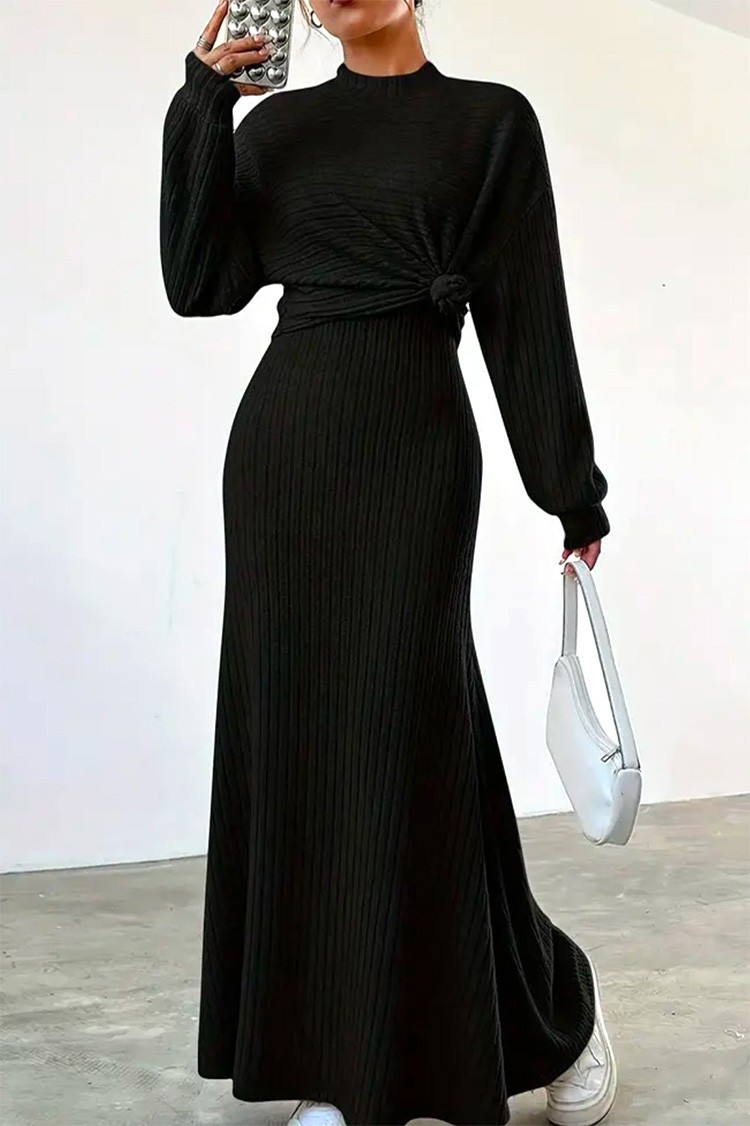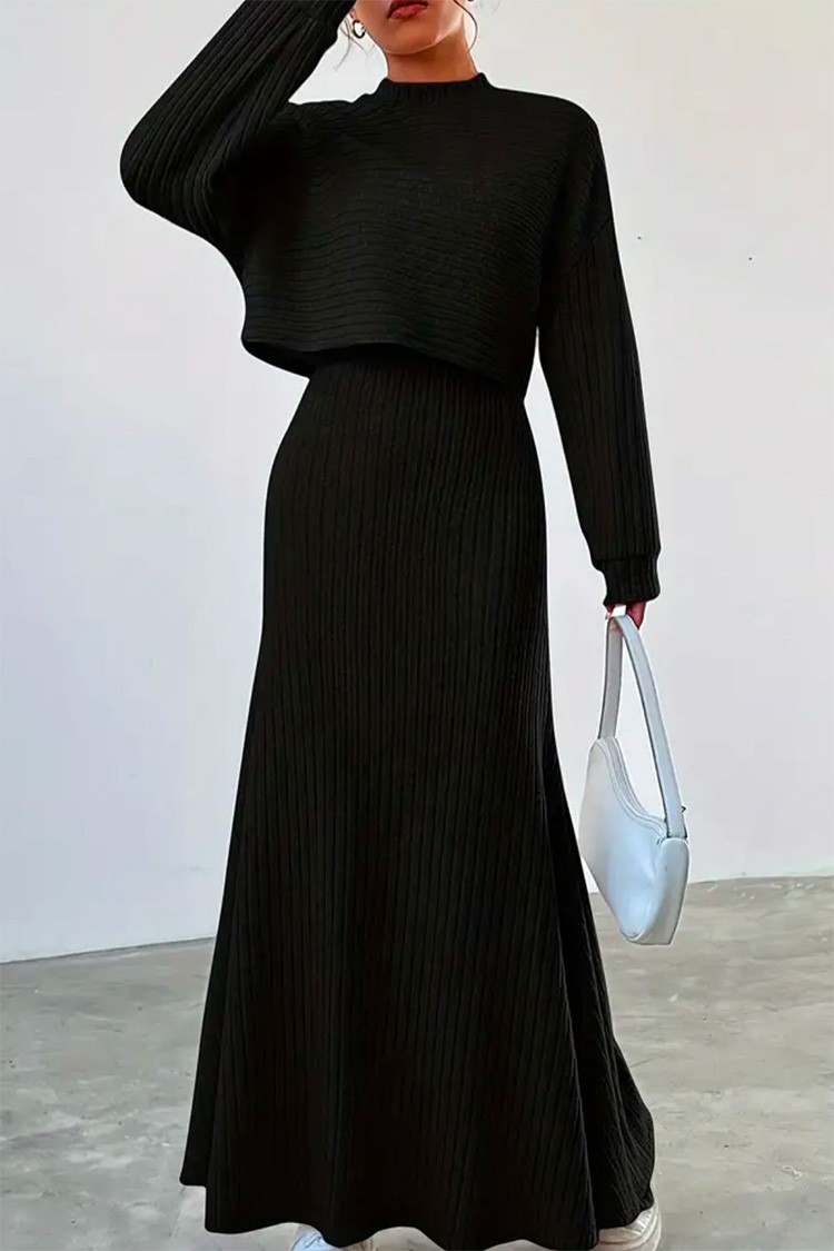 - Bluza ima duge rukave i širok kroj, a haljina ima udobne naramenice i dugu dužinu.