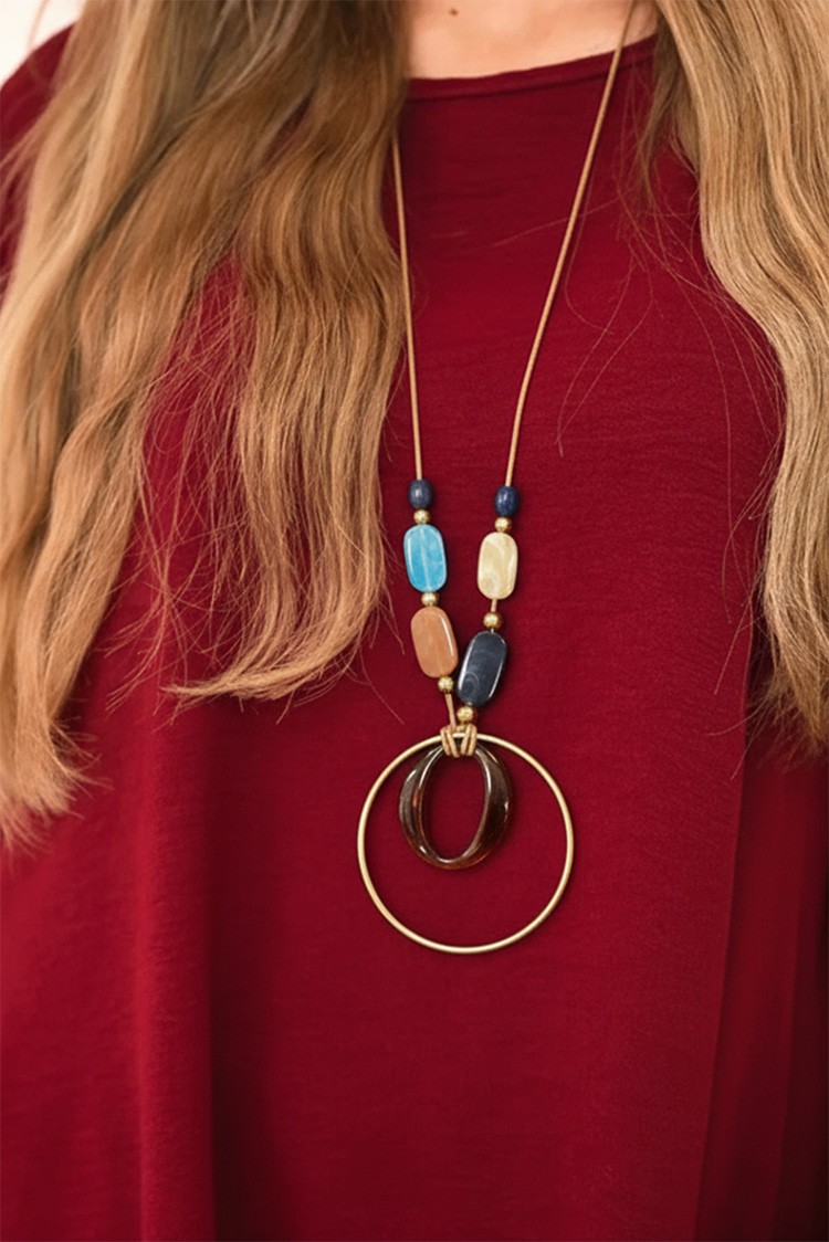 - Moderan dvodijelni set - udobne hlače i bluza sa spektakularnom ogrlicom, izuzetno prikladan za svakodnevni život.