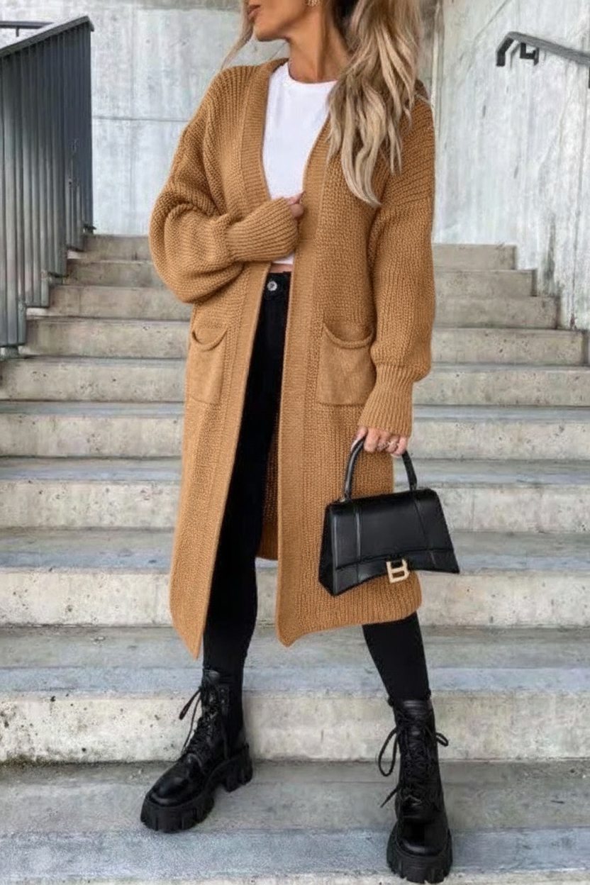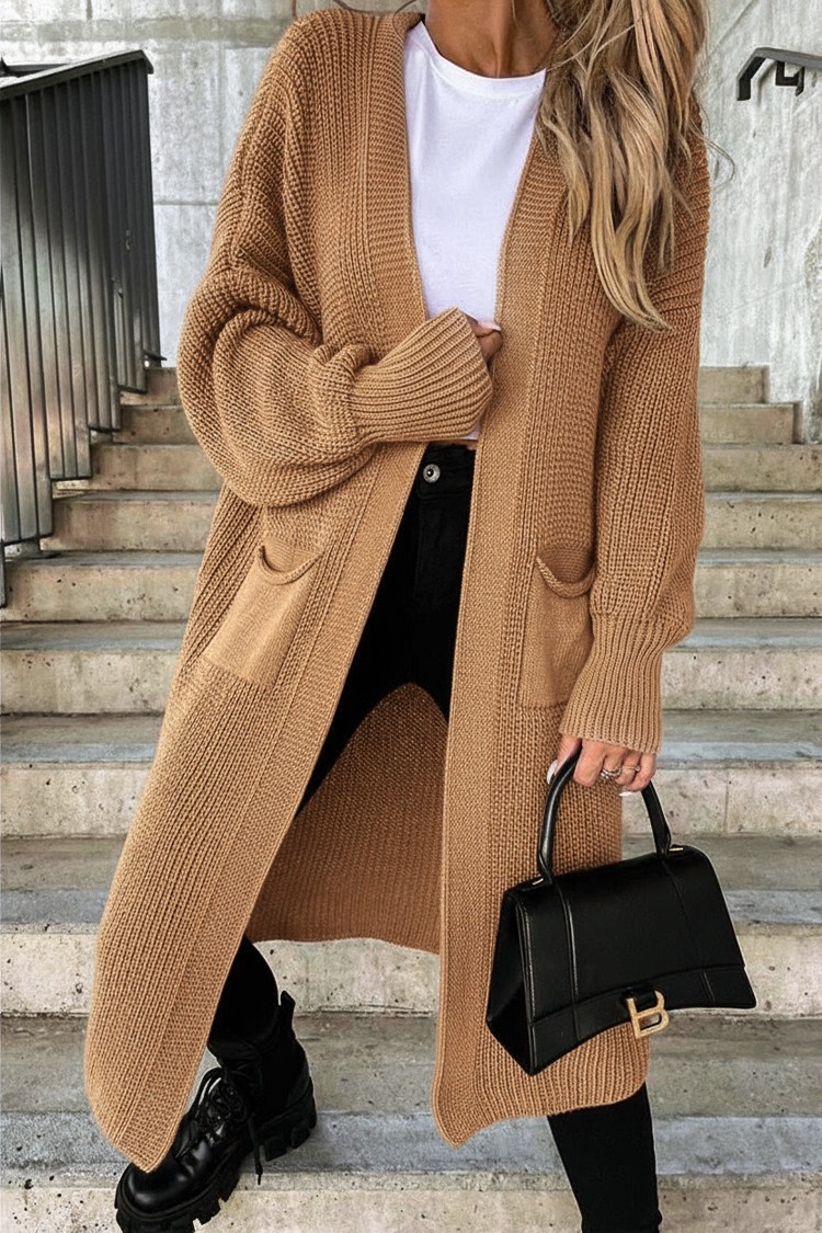 - Mekani i dugi ženski kardigan klasičnog kroja i praktičnih džepova, prikladan za svakodnevni život.