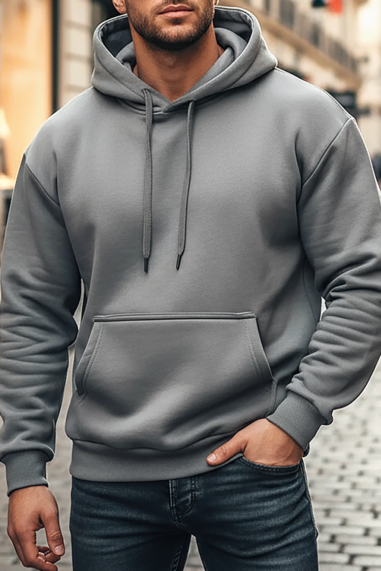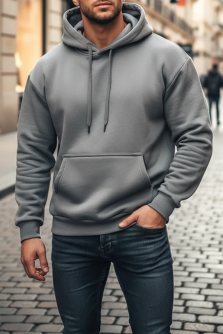 - Praktična muška dukserica s kapuljačom klasične sive boje, prikladna za svakodnevni život.