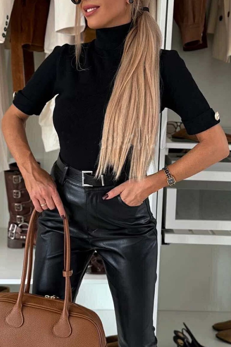 - Model ima kratke rukave sa spektakularnim rubom i elegantnu polo majicu.