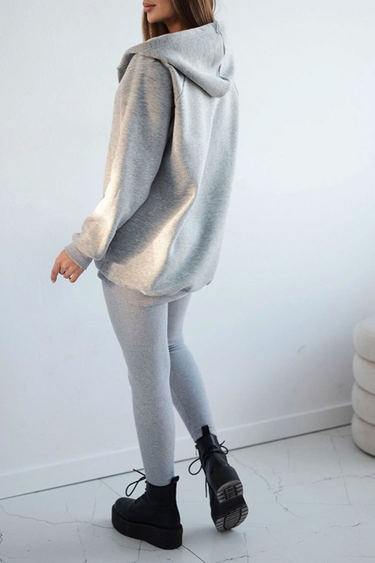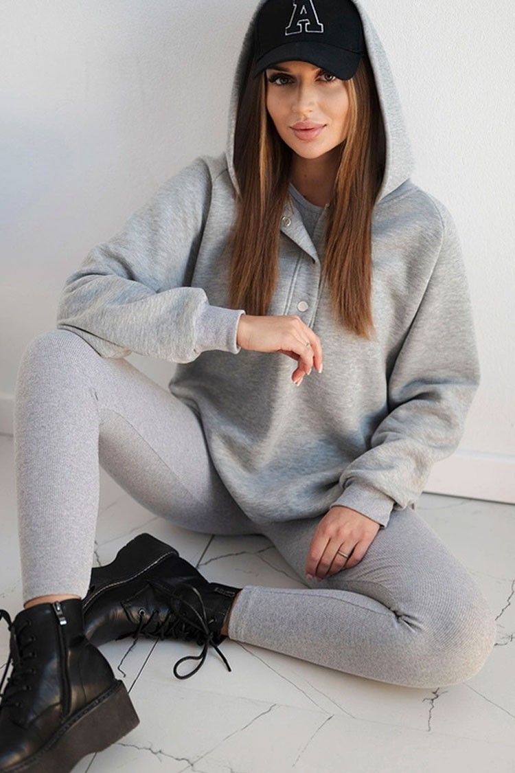 - Trenutni trodijelni set - udobne hlače, široka dukserica i top.