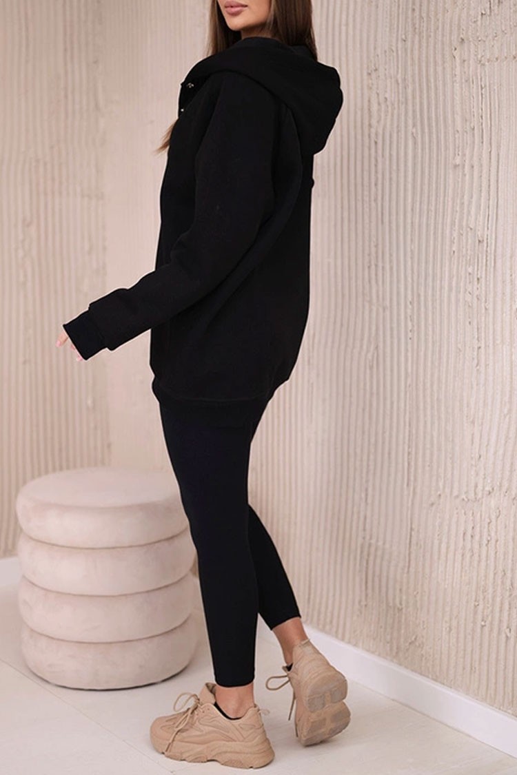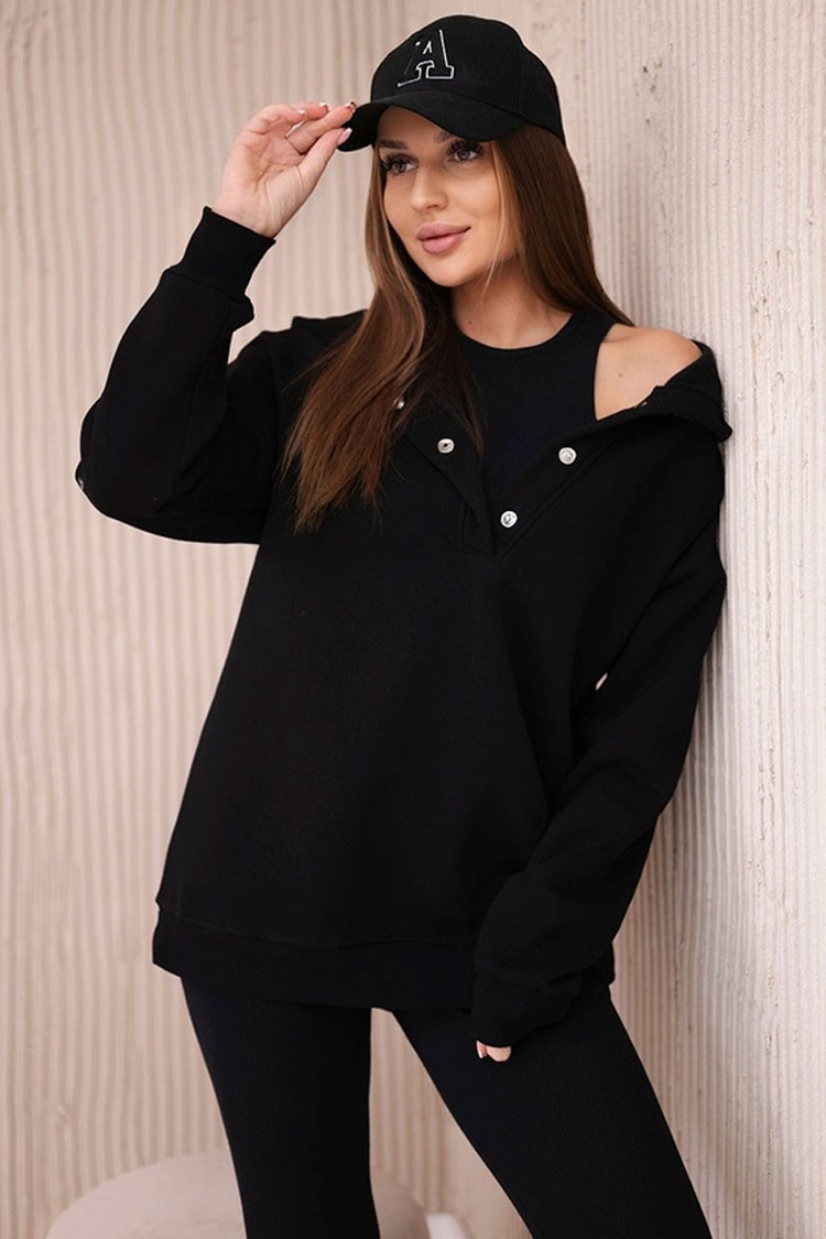 - Trenutni trodijelni set - udobne hlače, široka dukserica i top.