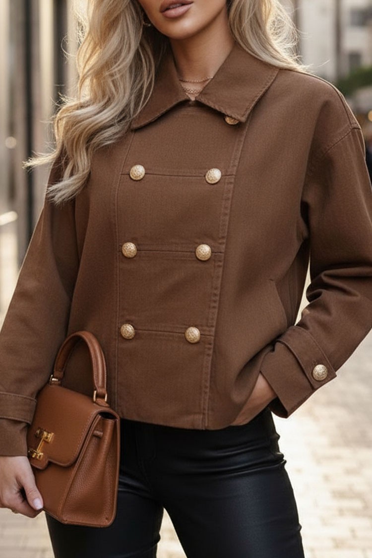 - Model impresionira elegantnim dizajnom, klasičnim ovratnikom, dvostrukim kopčanjem s gumbima i manžetama.