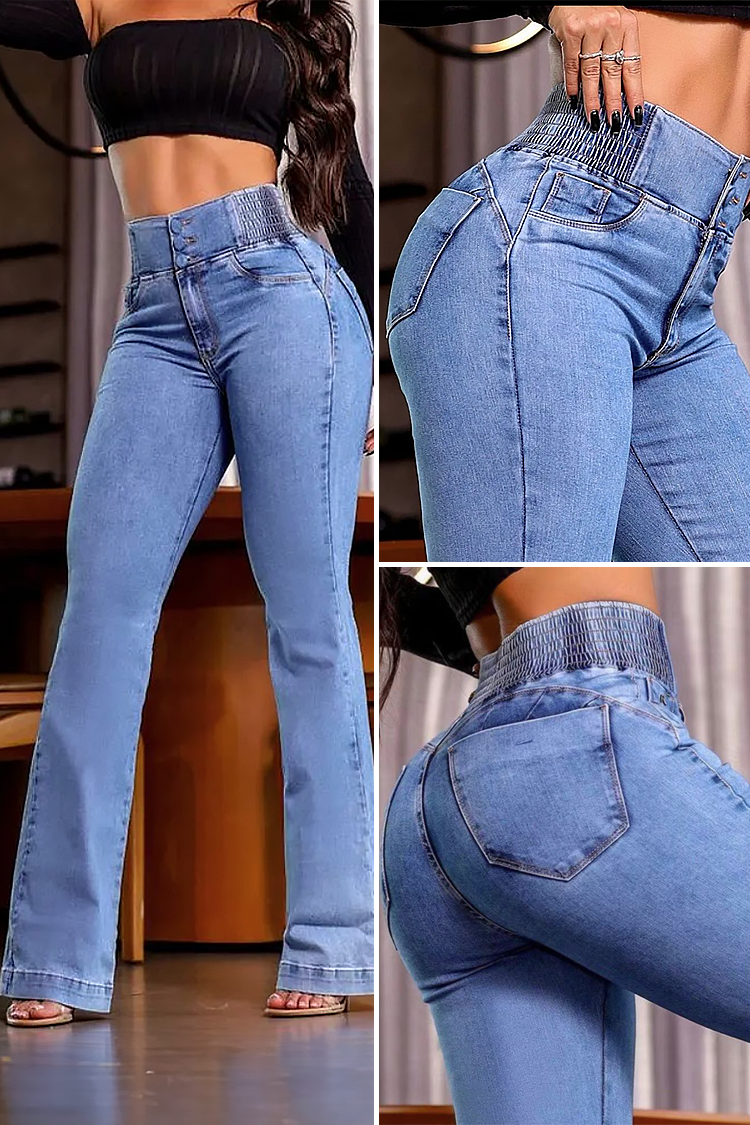 - S visokim strukom i pripijenim krojem koji lijepo naglašava obline i optički izdužuje siluetu.