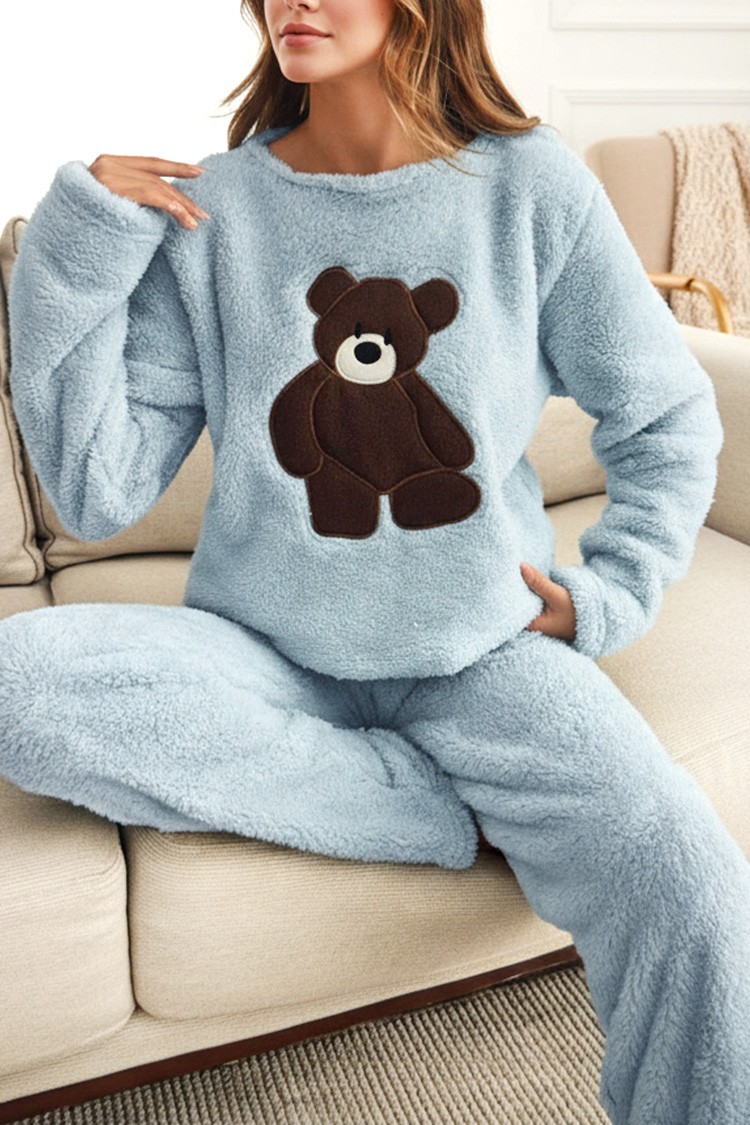 - Bluza ima spektakularan dizajn s medvjedićem, a hlače imaju visoki struk i širok kroj.