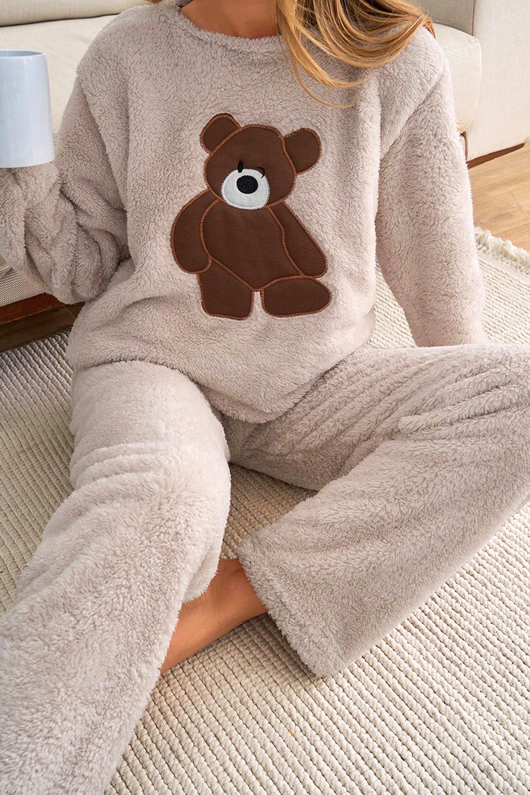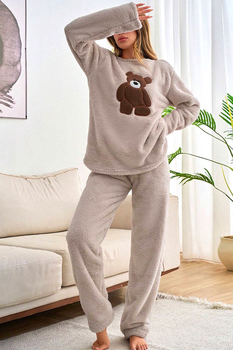 - Bluza ima spektakularan dizajn s medvjedićem, a hlače imaju visoki struk i širok kroj.