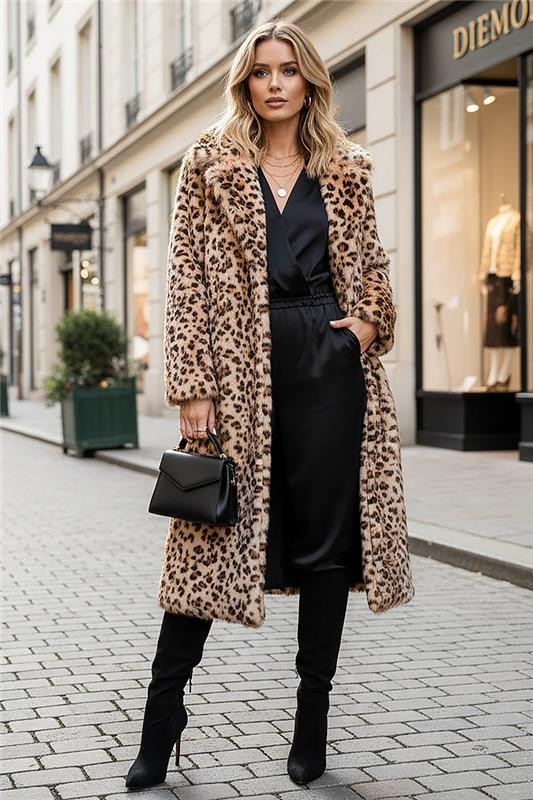 - Model ima udoban kroj, dugu duljinu i životinjski print.