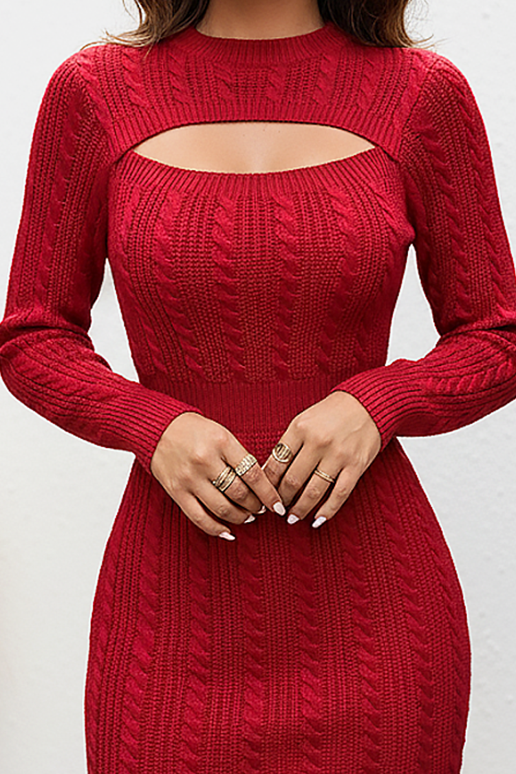 - Haljina ima pripijeni kroj, duge rukave i seksi dekolte.