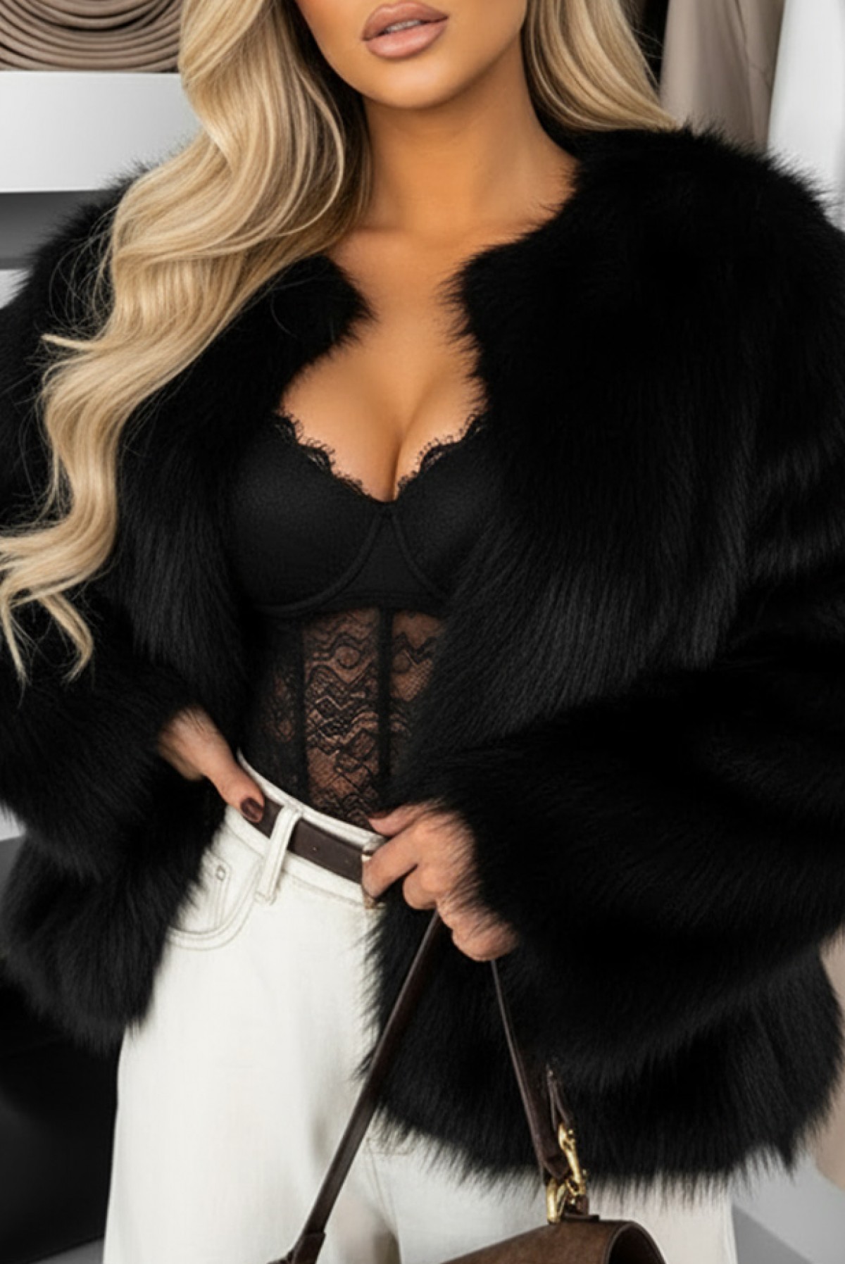 - Model je visok 170 cm i nosi univerzalnu veličinu.