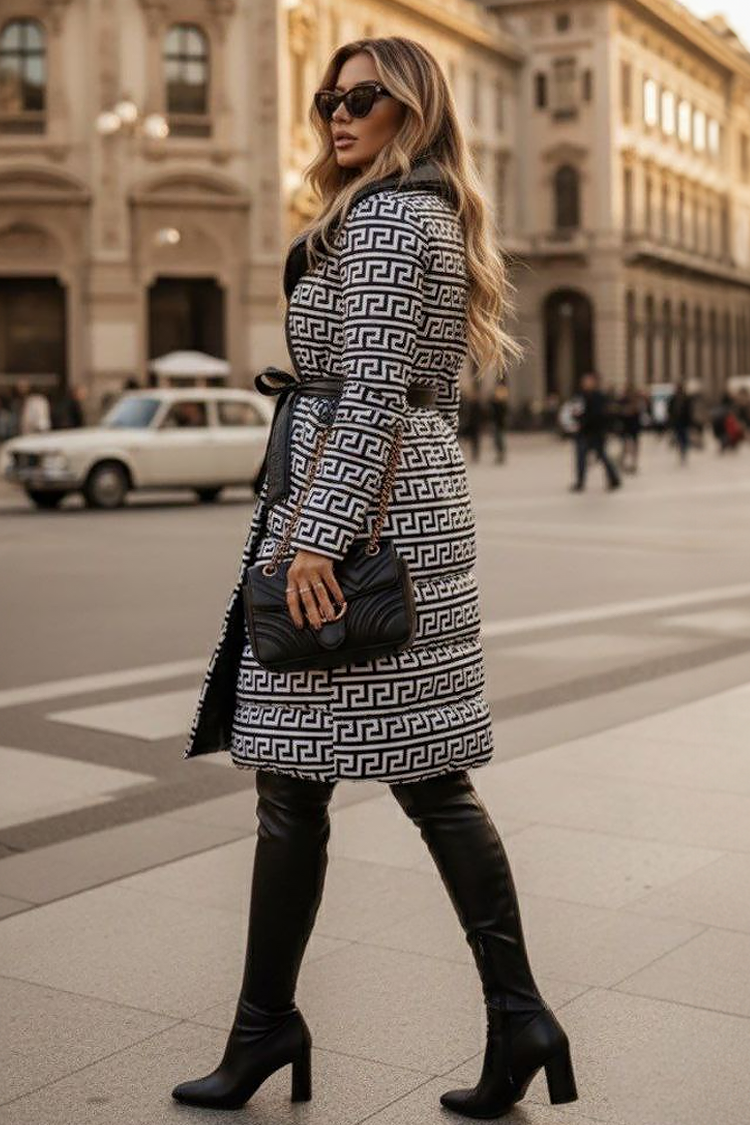 - Moderan model s praktičnim zatvaračem, elegantnim ovratnikom i remenom koji naglašava struk i daje dovršen izgled.
