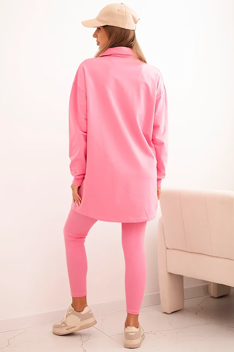 - Bluza ima udoban kroj i klasičan izrez, a tajice imaju elastičan struk i pripijeni kroj.