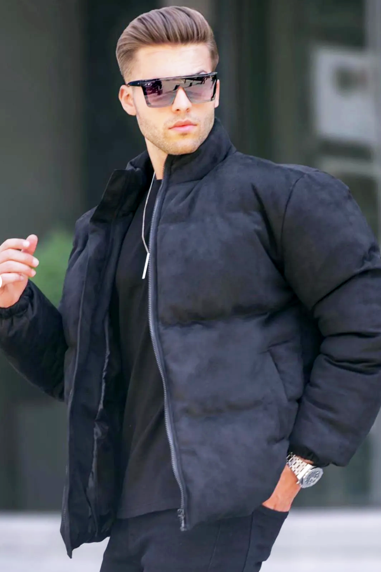 - Praktična muška jakna u crnoj boji, prikladna za hladne dane.