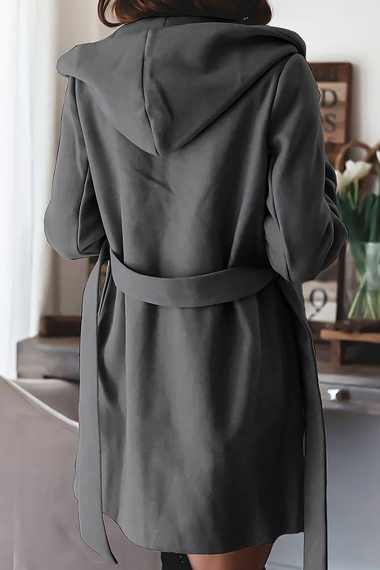 - Model ima udoban kroj, ovratnik, džepove, remen od iste tkanine i kapuljaču.