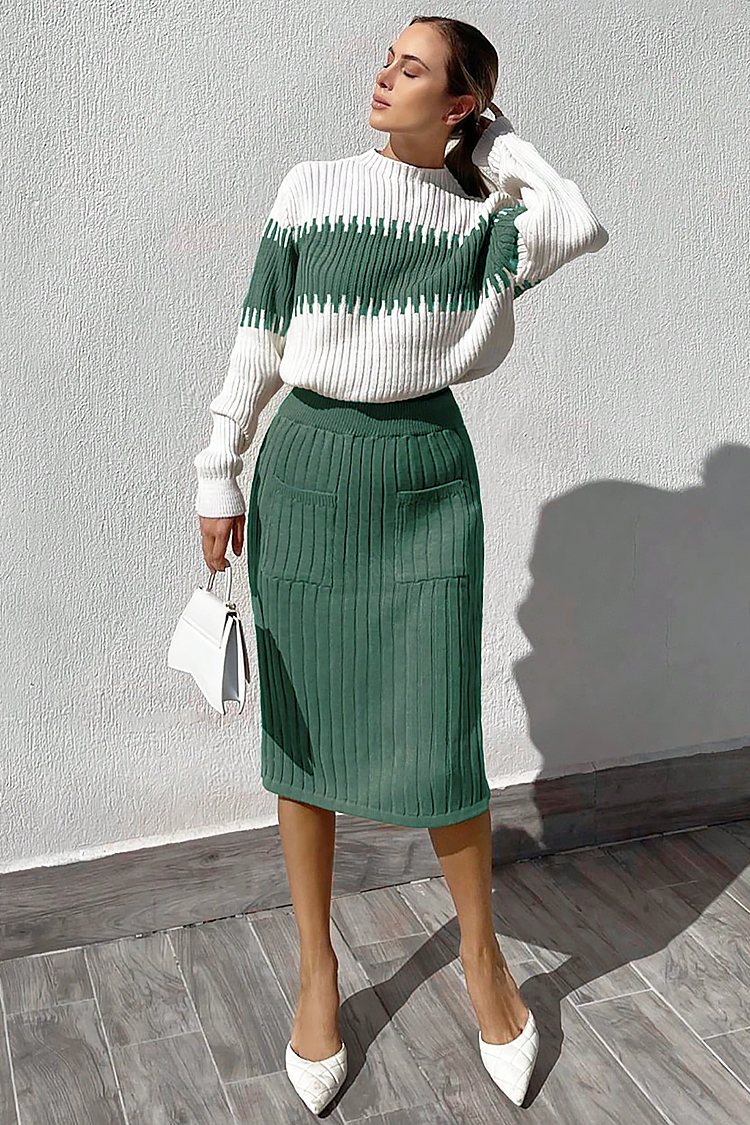 - Moderan dvodijelni set - udobna suknja i pulover spektakularnog dizajna.