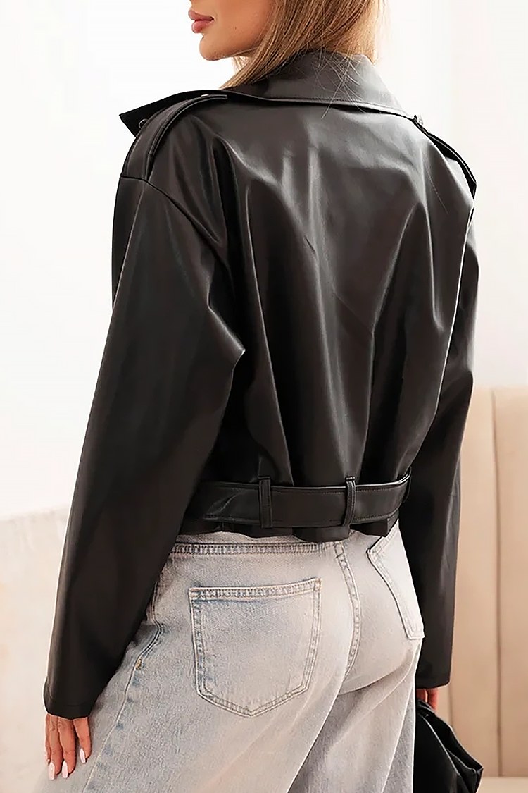 - Model ima udoban kroj, elegantan ovratnik, patentni zatvarač i remen izrađen od istog materijala.