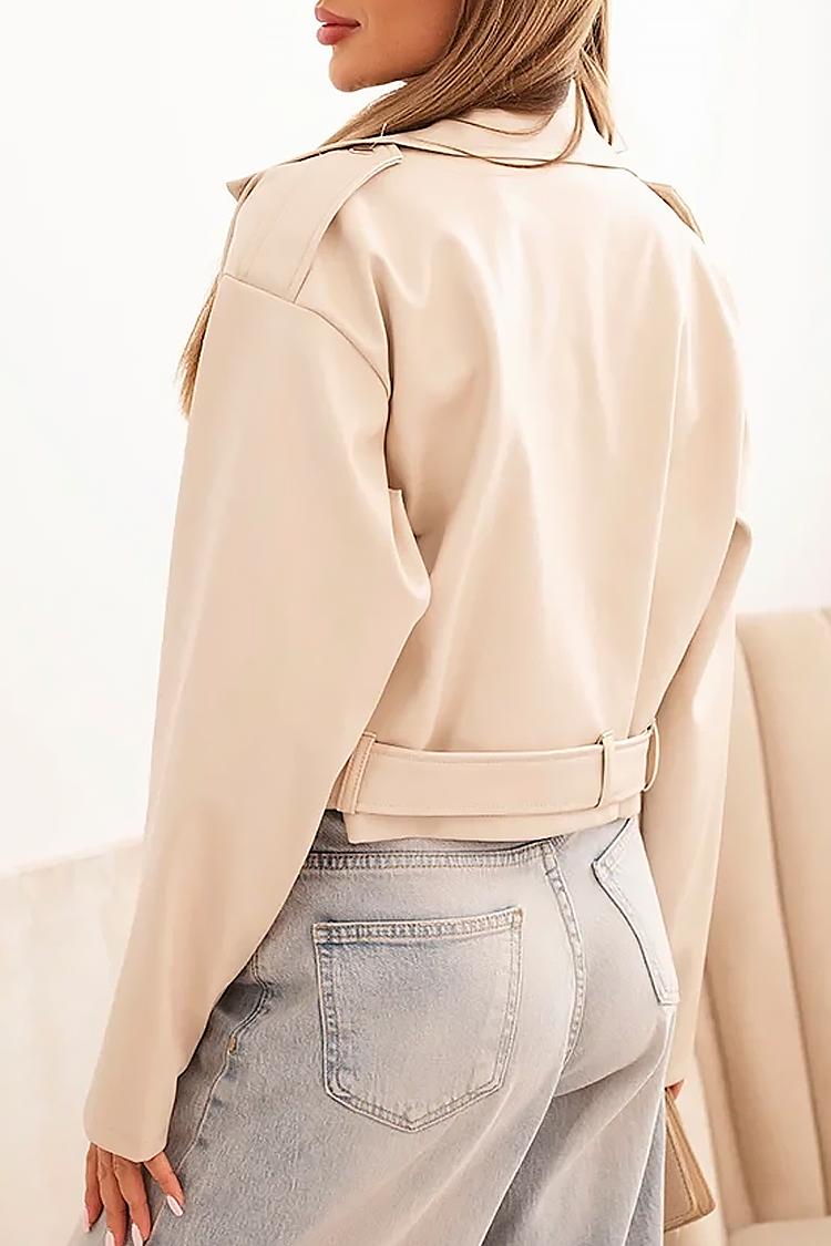 - Model ima udoban kroj, elegantan ovratnik, patentni zatvarač i remen izrađen od istog materijala.