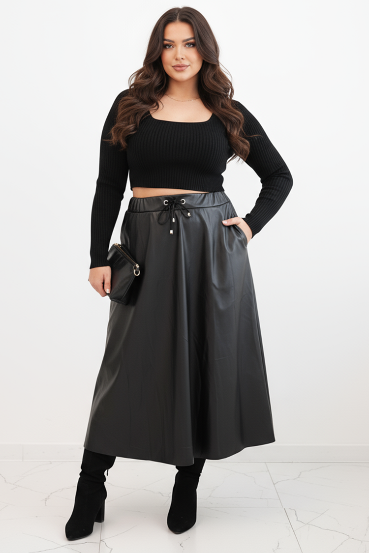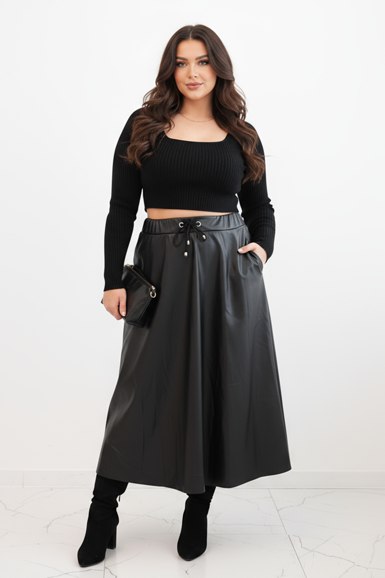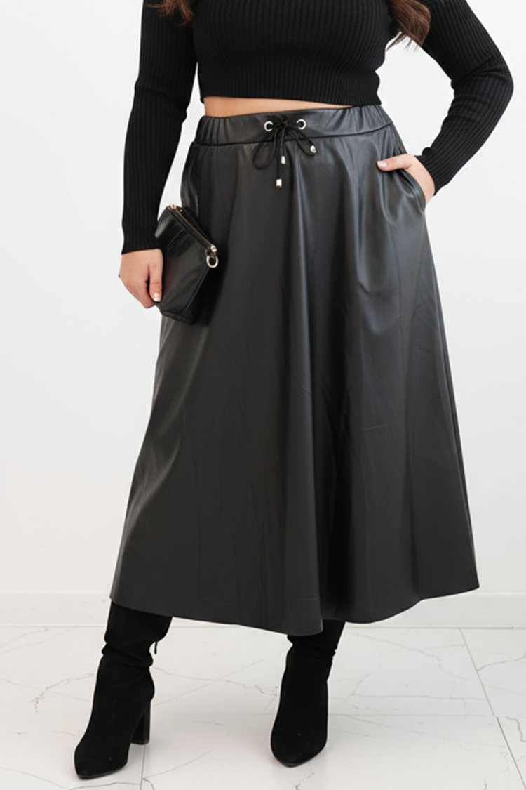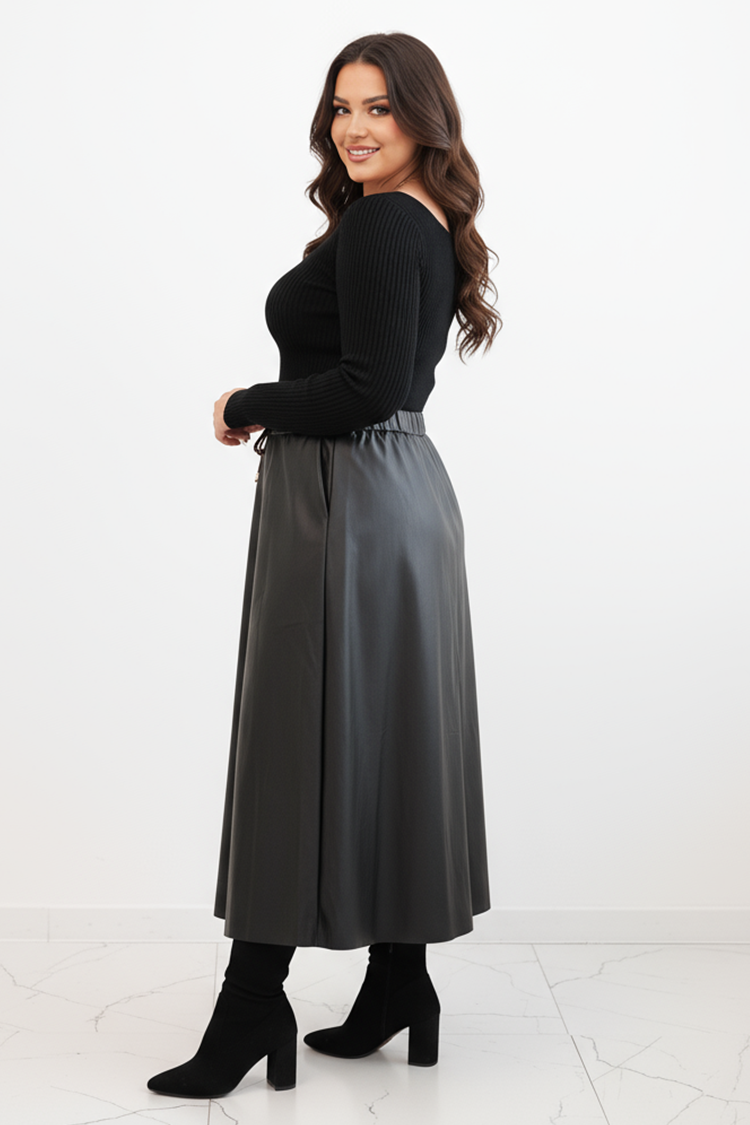 - Aktualan model midi suknje od eko kože, prikladan za svakodnevni život.