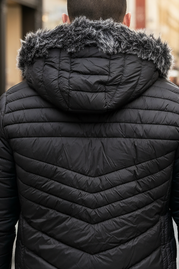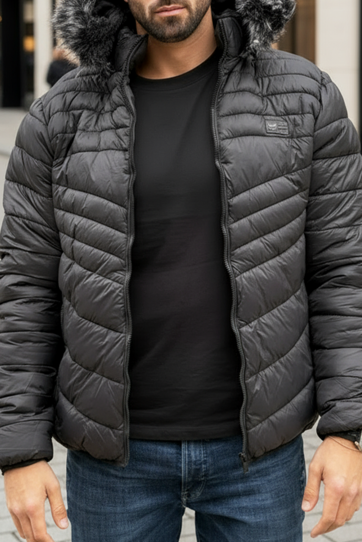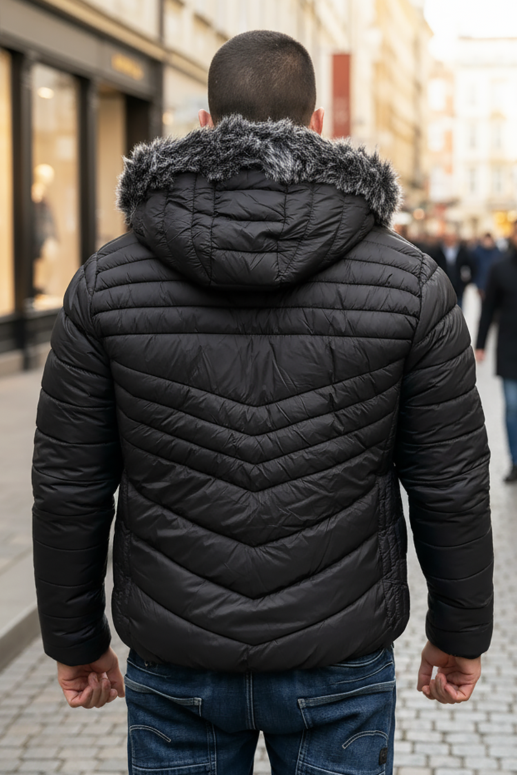 - Muška zimska jakna za svaki dan s toplom vunom i prošivenim dizajnom u crnoj boji.