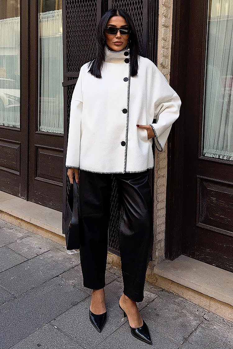 - Model ima moderan predimenzionirani kroj, elegantan ovratnik i gumbe po cijeloj duljini.