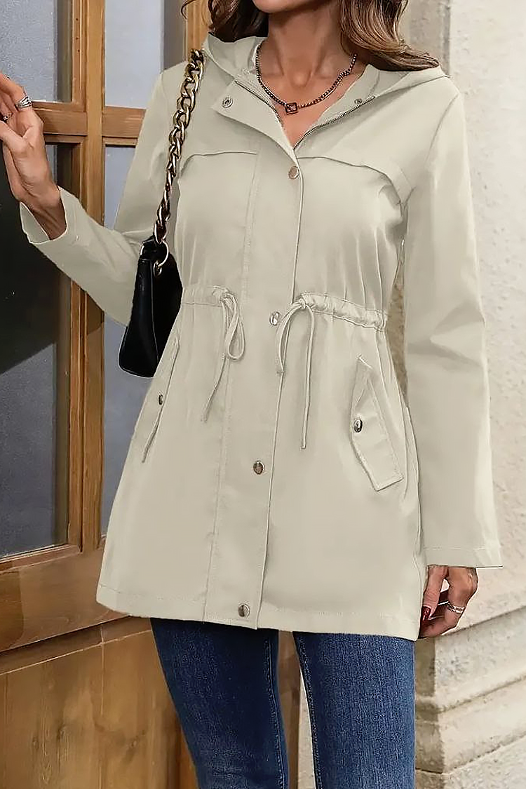 - Model ima udoban kroj, kapuljaču, vezice u struku, gumbe i džepove.