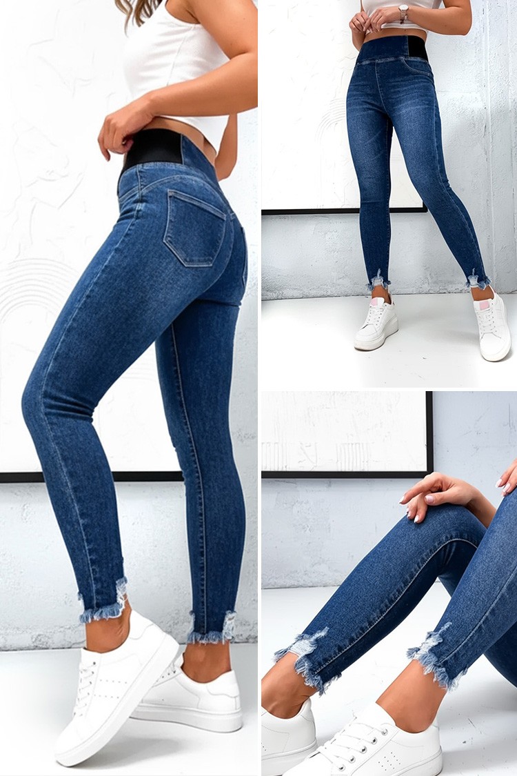 - Model ima visoki, elastični struk i precizan kroj koji naglašava figuru.