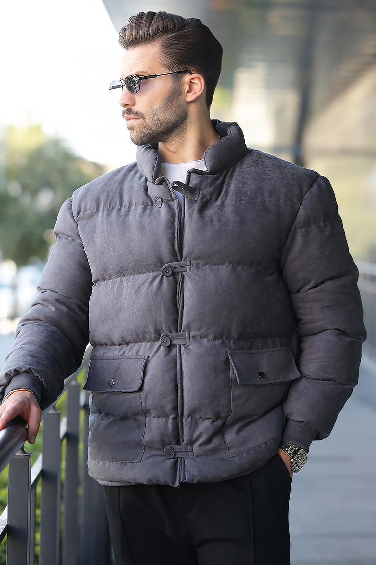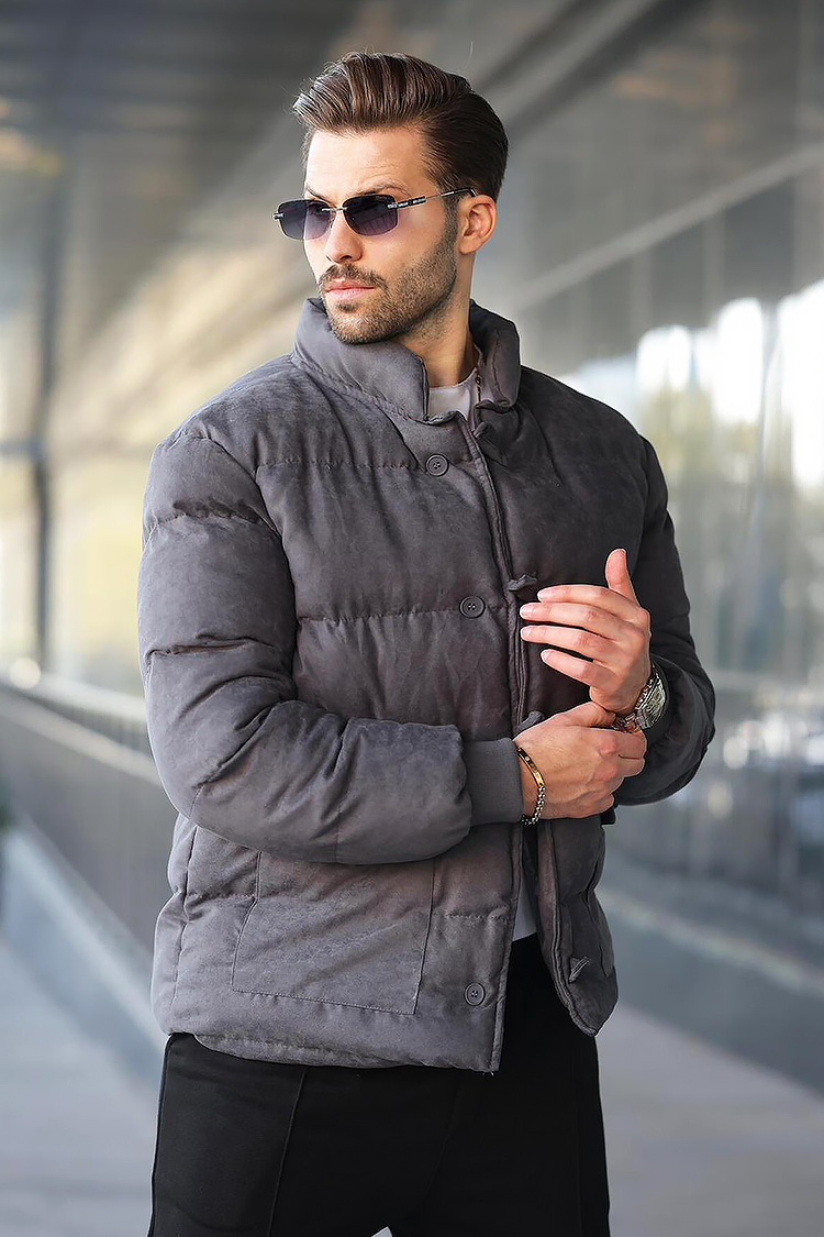 - Praktična muška jakna u sivoj boji, prikladna za hladne dane.