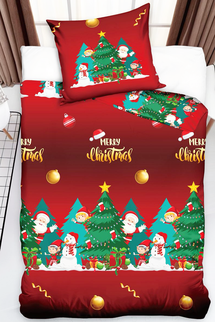 - Dvodijelni set posteljine dimenzija 140x200 cm, izrađen od visokokvalitetnog pamučnog satena u božićnim motivima.