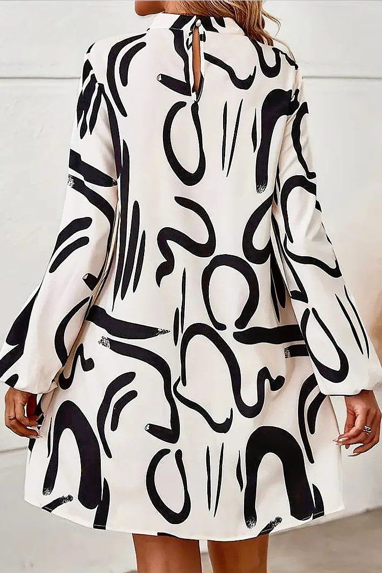 - Kratka haljina sa spektakularnim uzorkom, pogodna za razne modne kombinacije.