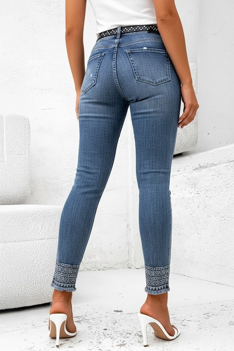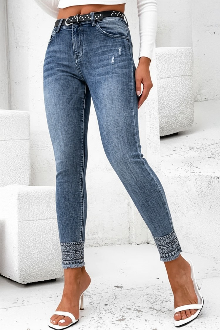 - Model ima visoki, elastični struk i precizan kroj koji naglašava figuru.