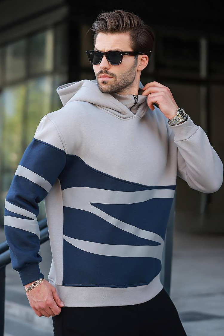 - Sportsko-ležerna muška dukserica s patentnim zatvaračem, kapuljačom i spektakularnim detaljem.