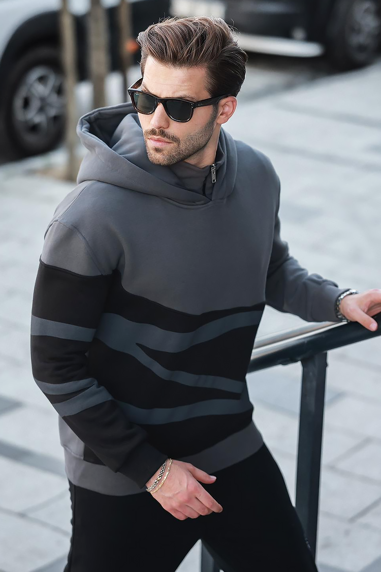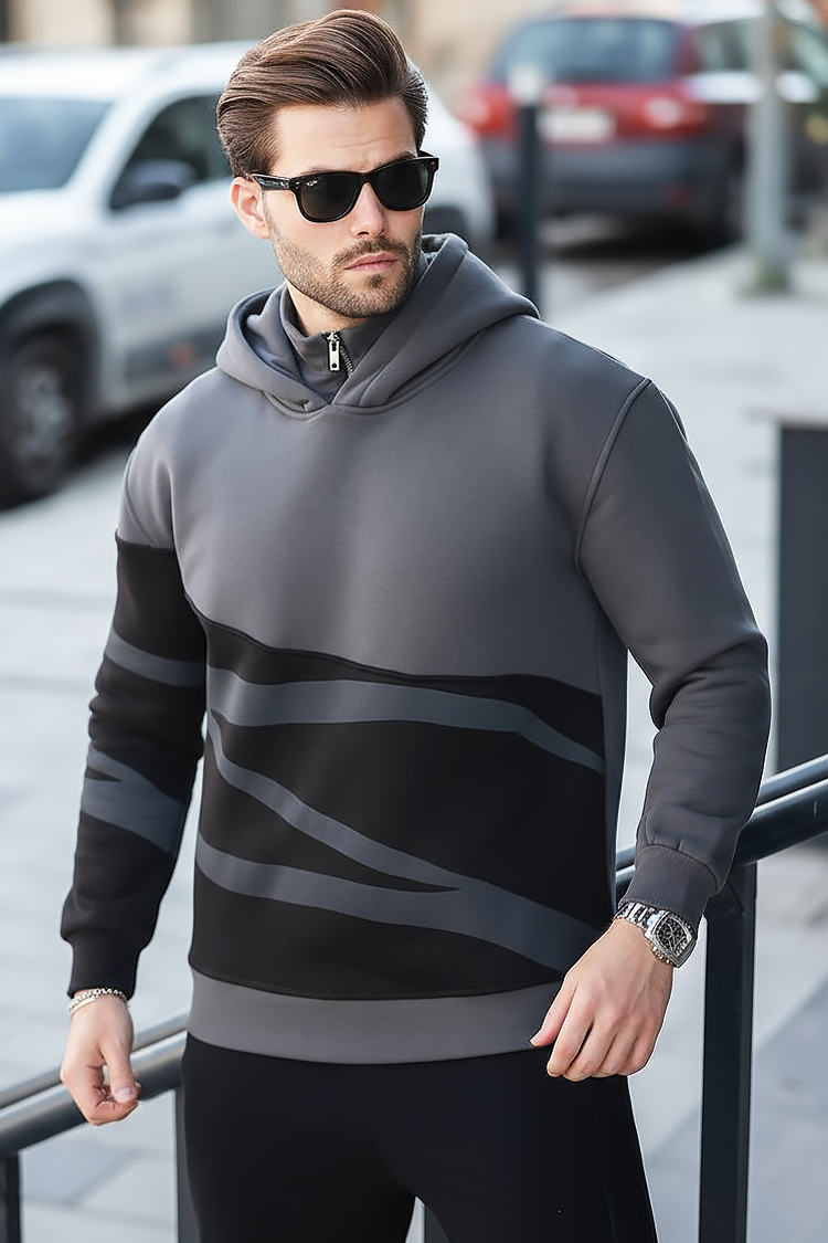 - Sportsko-ležerna muška dukserica s patentnim zatvaračem, kapuljačom i spektakularnim detaljem.