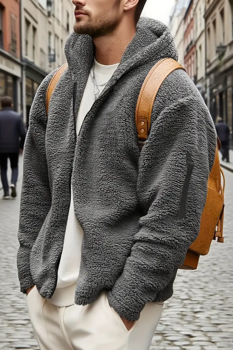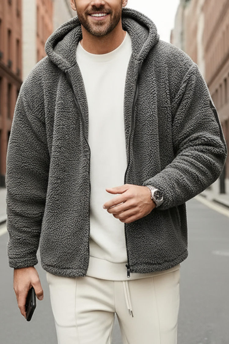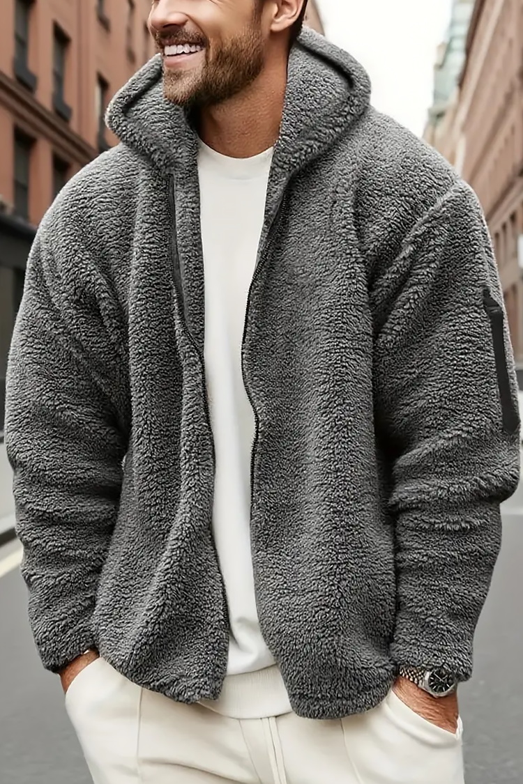 - Praktična muška dukserica s džepovima u grafitnoj boji, prikladna za svakodnevni život ili šetnju.