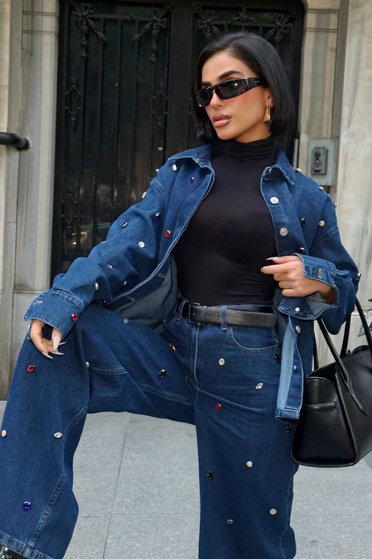 - Dvodijelni traper ženski set, pogodan za svakodnevno nošenje.
