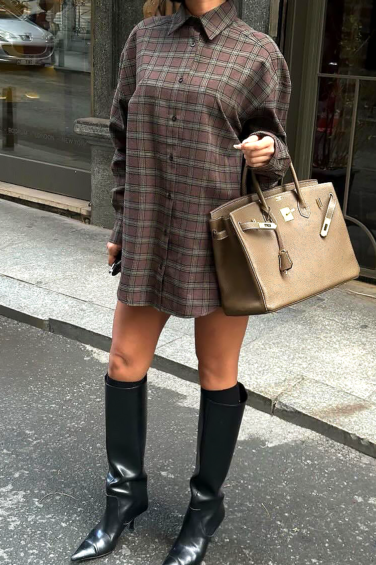 - Model ima karirani uzorak i standardno kopčanje na gumbe.