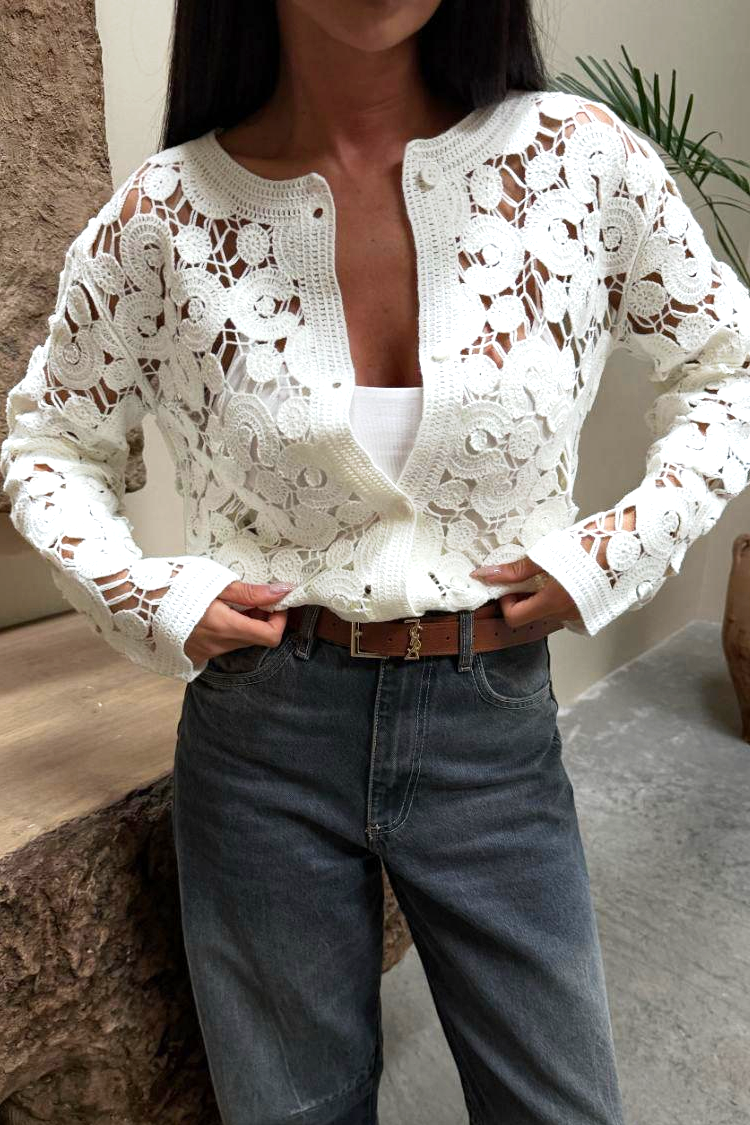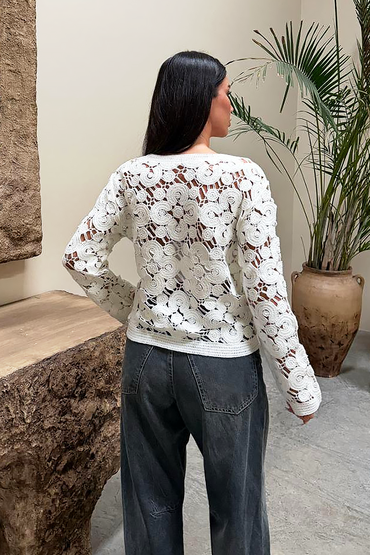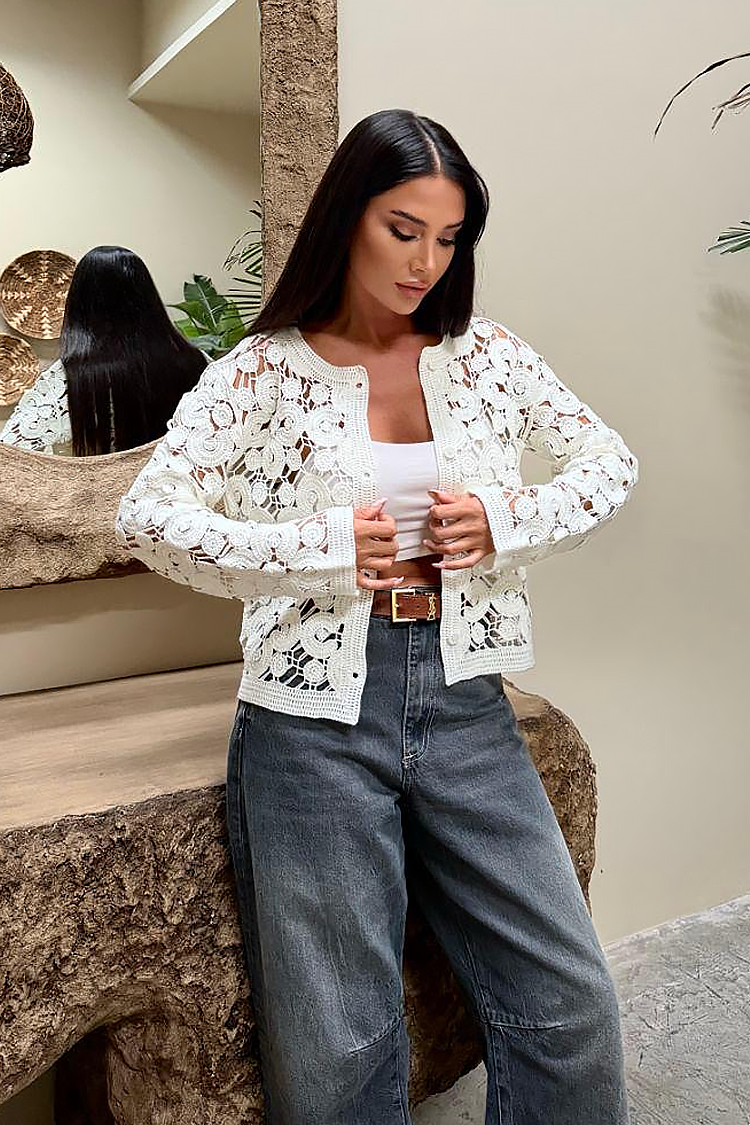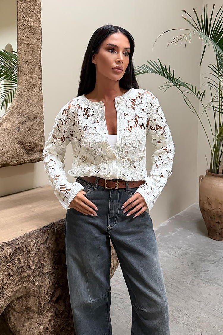 - Model ima duge rukave, gumbe i prekrasan spektakularan vez.
