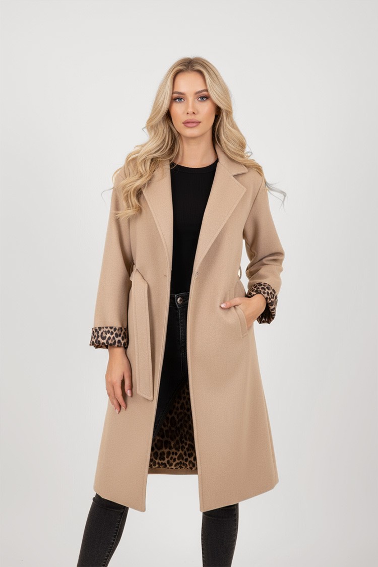 - Udobnog kroja, prikladan za svaku figuru, midi duljine i elegantnog ovratnika s remenom od iste tkanine.