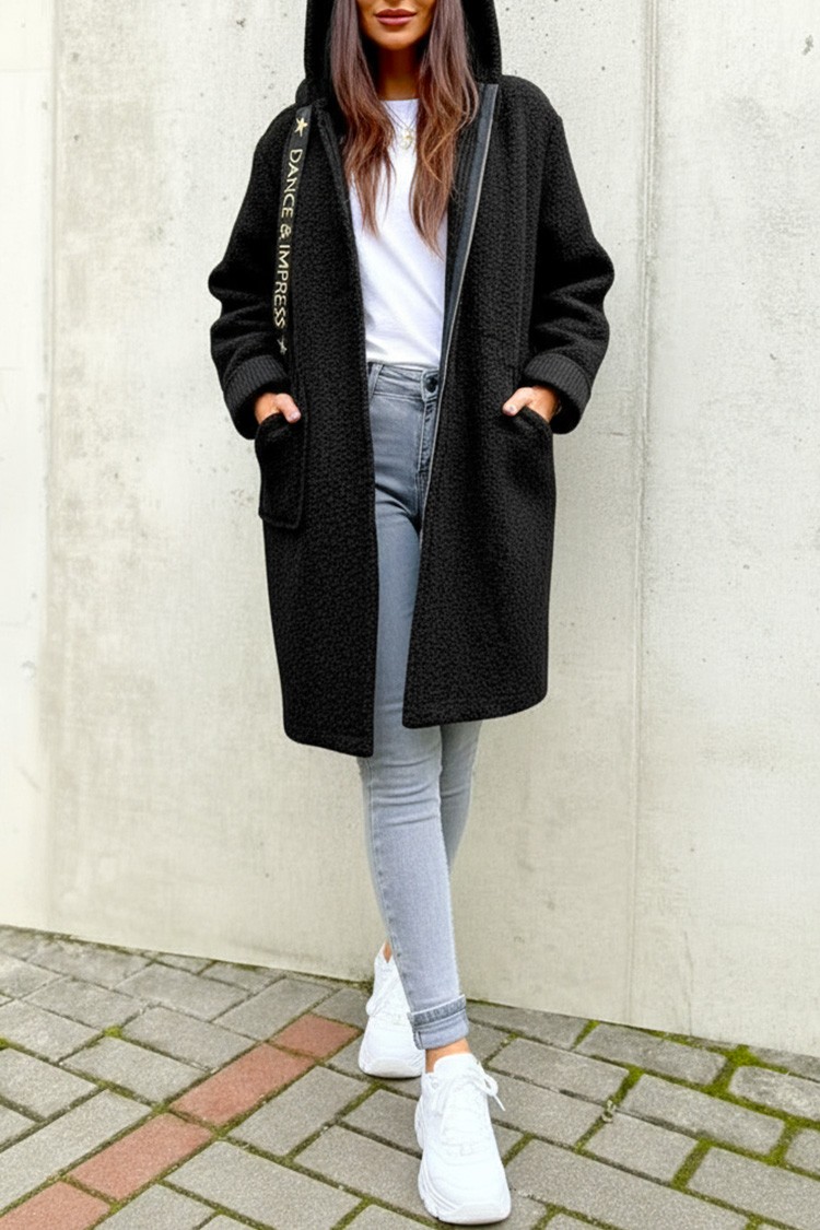 - Model ima spektakularan kroj i duljinu, praktične džepove, kapuljaču i zatvarač na patentni zatvarač.