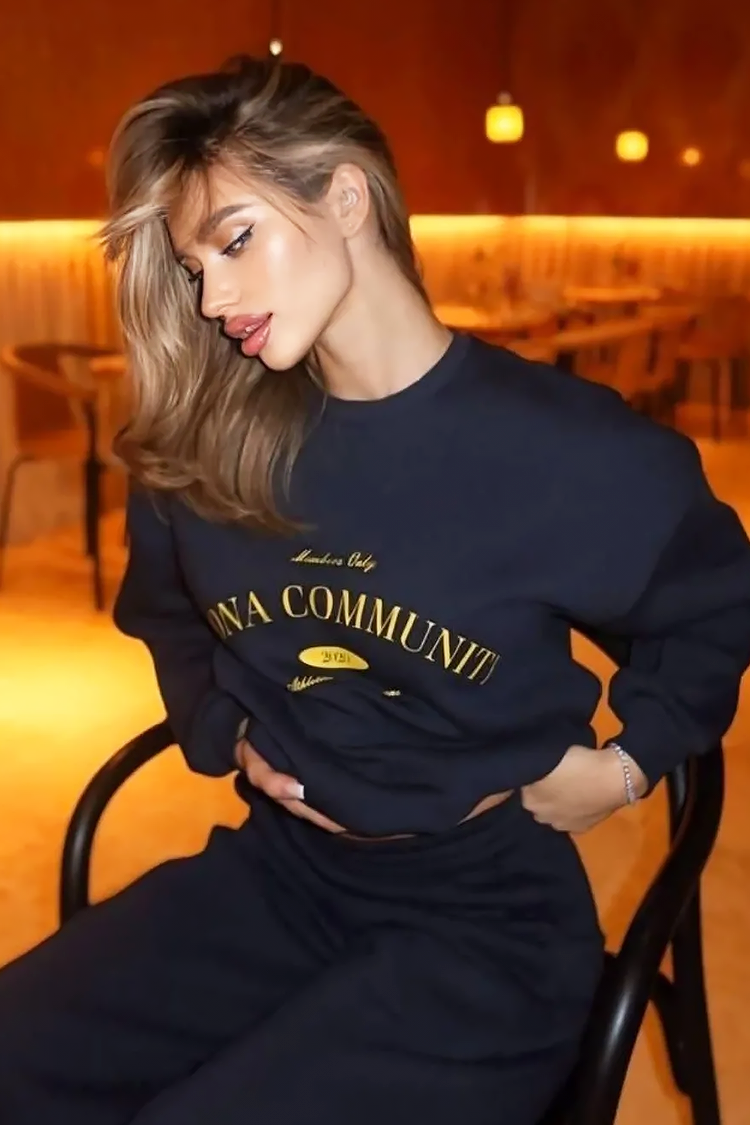 - Gornji dio je bluza slobodnog i klasičnog kroja sa spektakularnim natpisom.