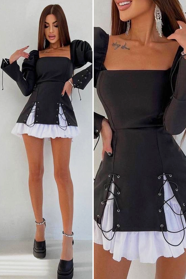 - Kratka haljina atraktivnog dizajna, prikladna za razne modne prigode.