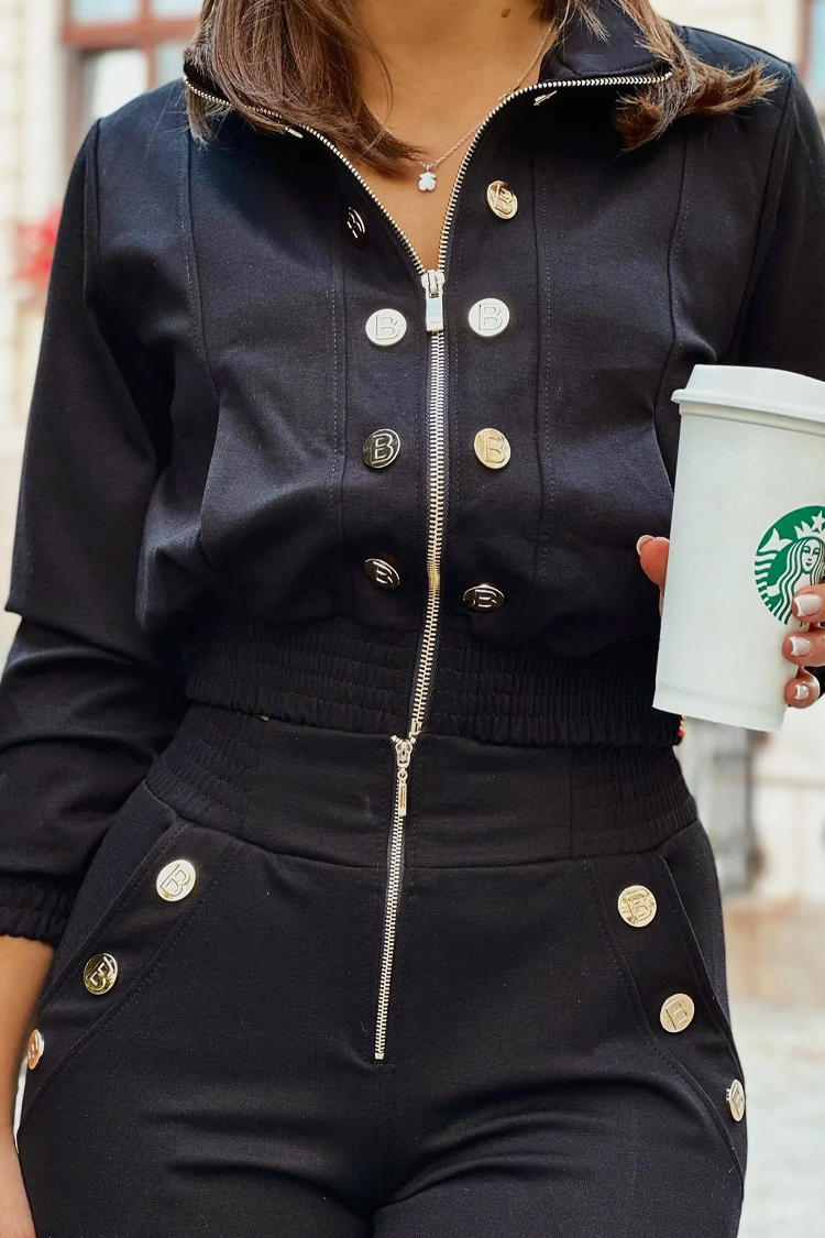 - Ženski dvodijelni set za svaki dan s jednobojnim uzorkom.