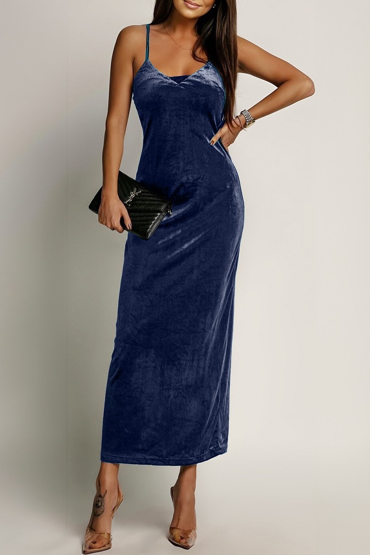 - Haljina ima uski kroj, tanke naramenice i dugu duljinu. Model se kopča skrivenim rajsferšlusom na leđima.