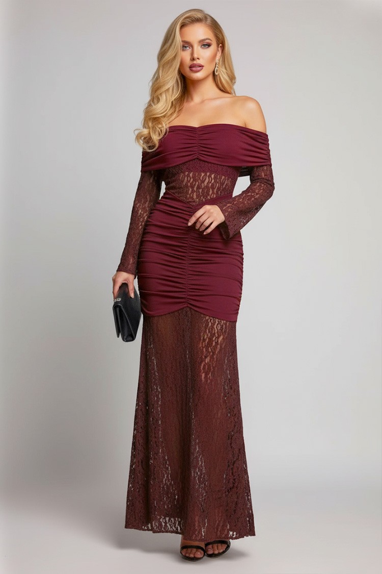- Model ima uski kroj, duge rukave, seksi spuštena ramena i efektnu čipku.