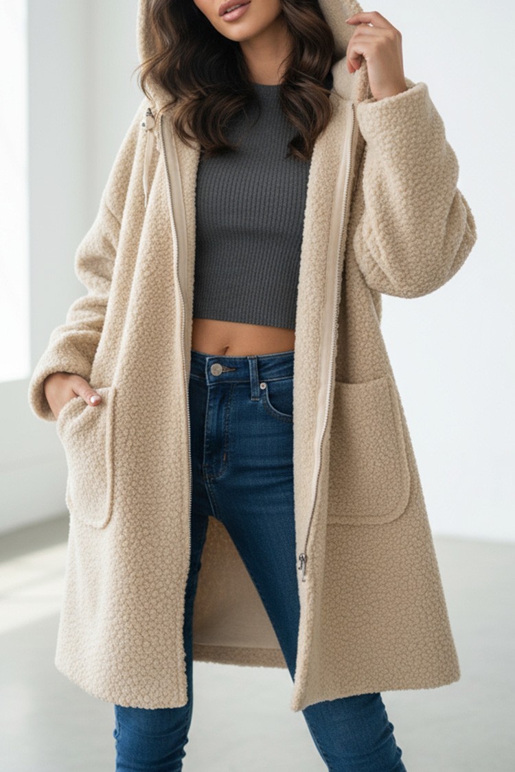 - Model ima udoban kroj, kapuljaču, praktične velike džepove i kopča se patentnim zatvaračem.