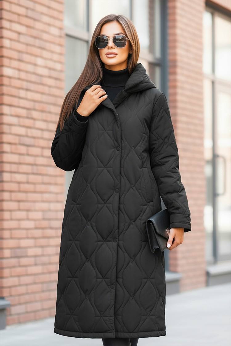 - Model ima udoban kroj, kopčanje na gumbe, midi duljinu, elegantan ovratnik i džepove.
