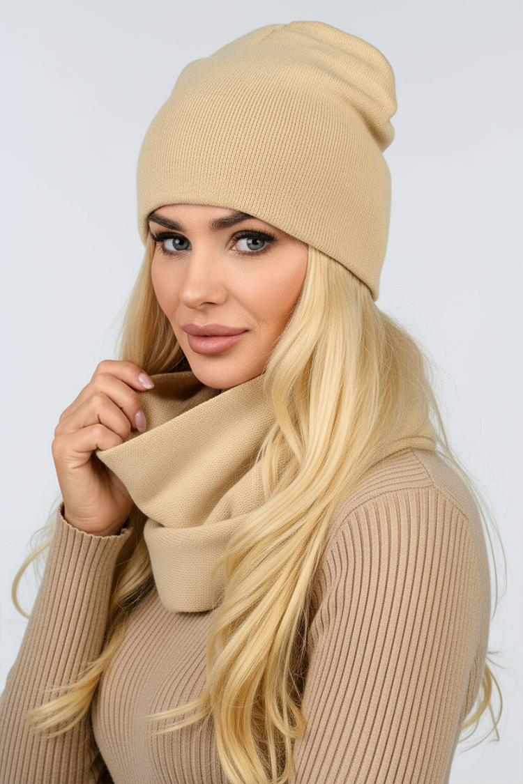 - Upotpunite svoju odjevnu kombinaciju dvodijelnim setom - kapom i šalom s jednobojnim uzorkom.