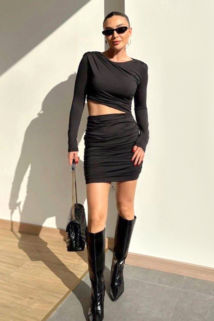 - Model ima duge rukave, pripijeni kroj i seksi izrezan struk.