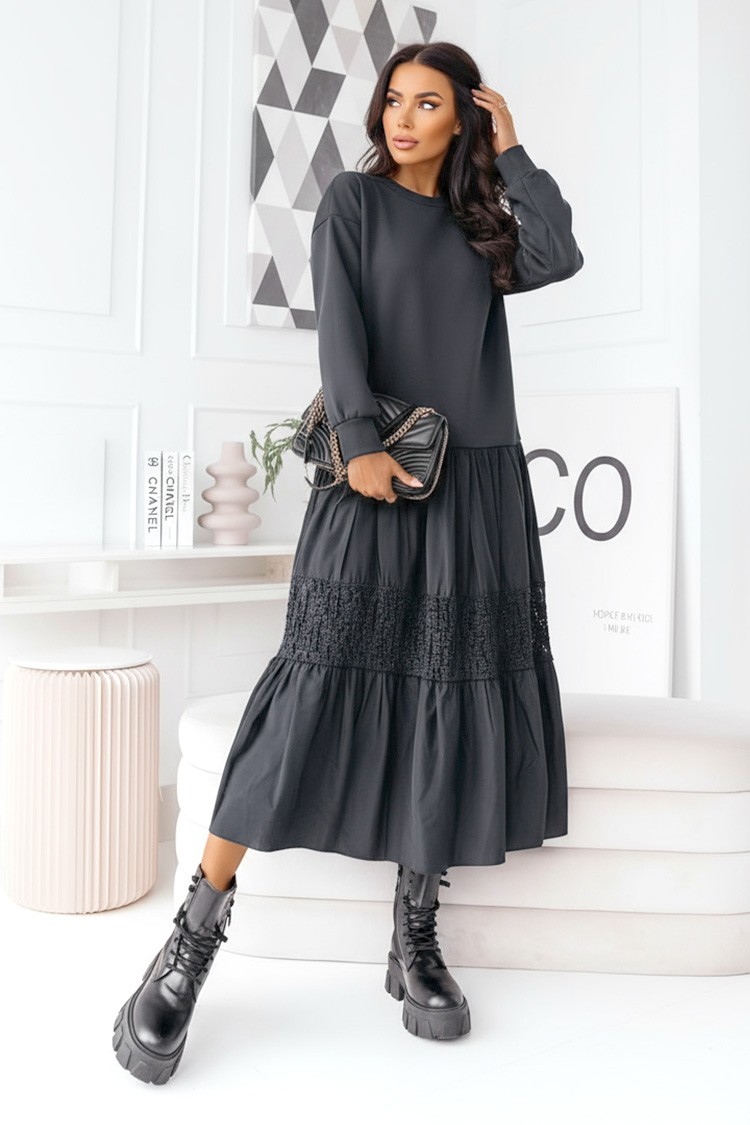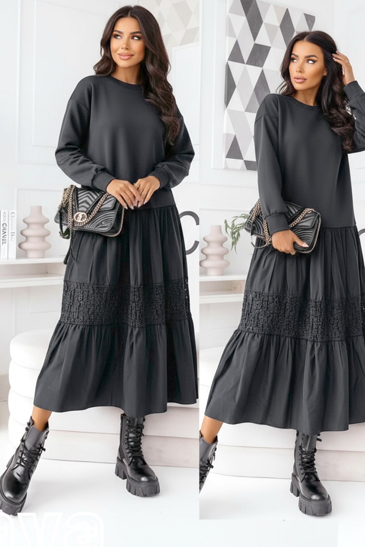 - Haljina ima duge rukave, rasklopljen i udoban kroj te je prikladna za svaki tip figure.