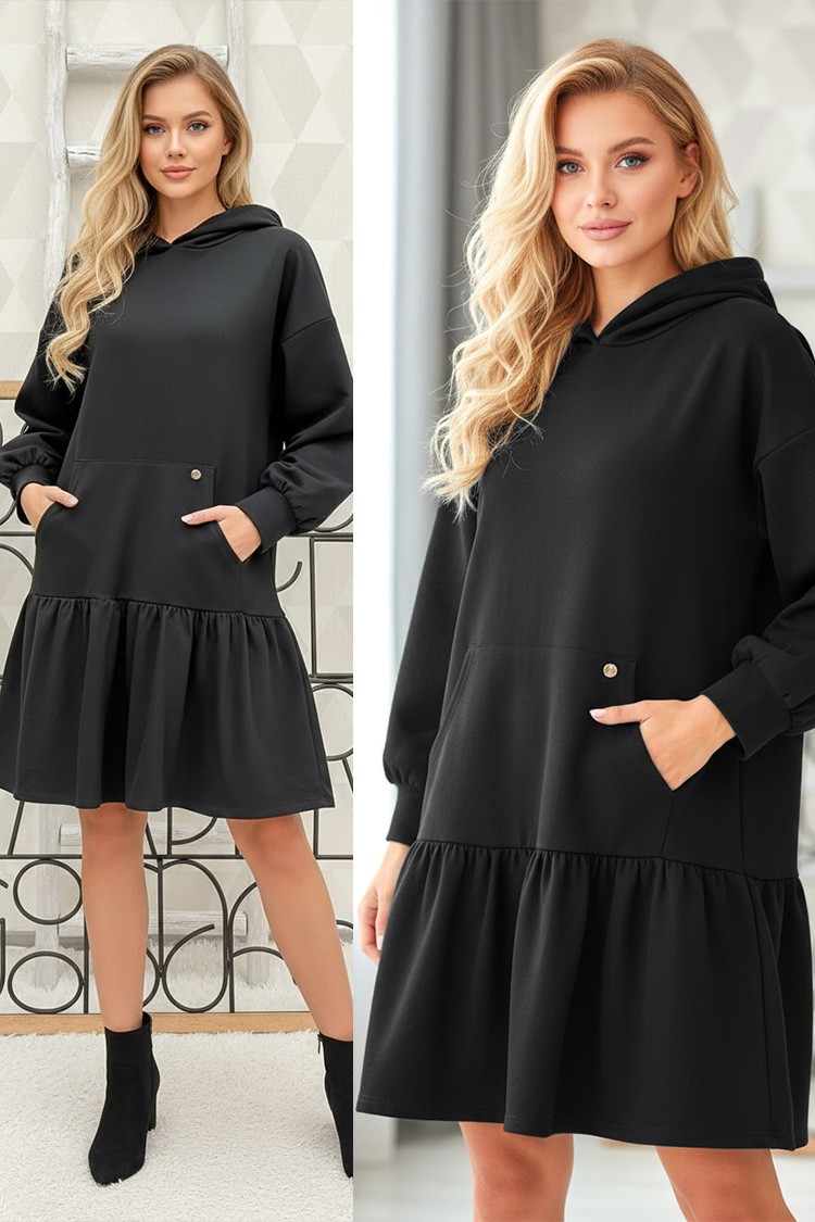 - Model ima široki dizajn, kapuljaču, duge rukave te udobne i praktične džepove.